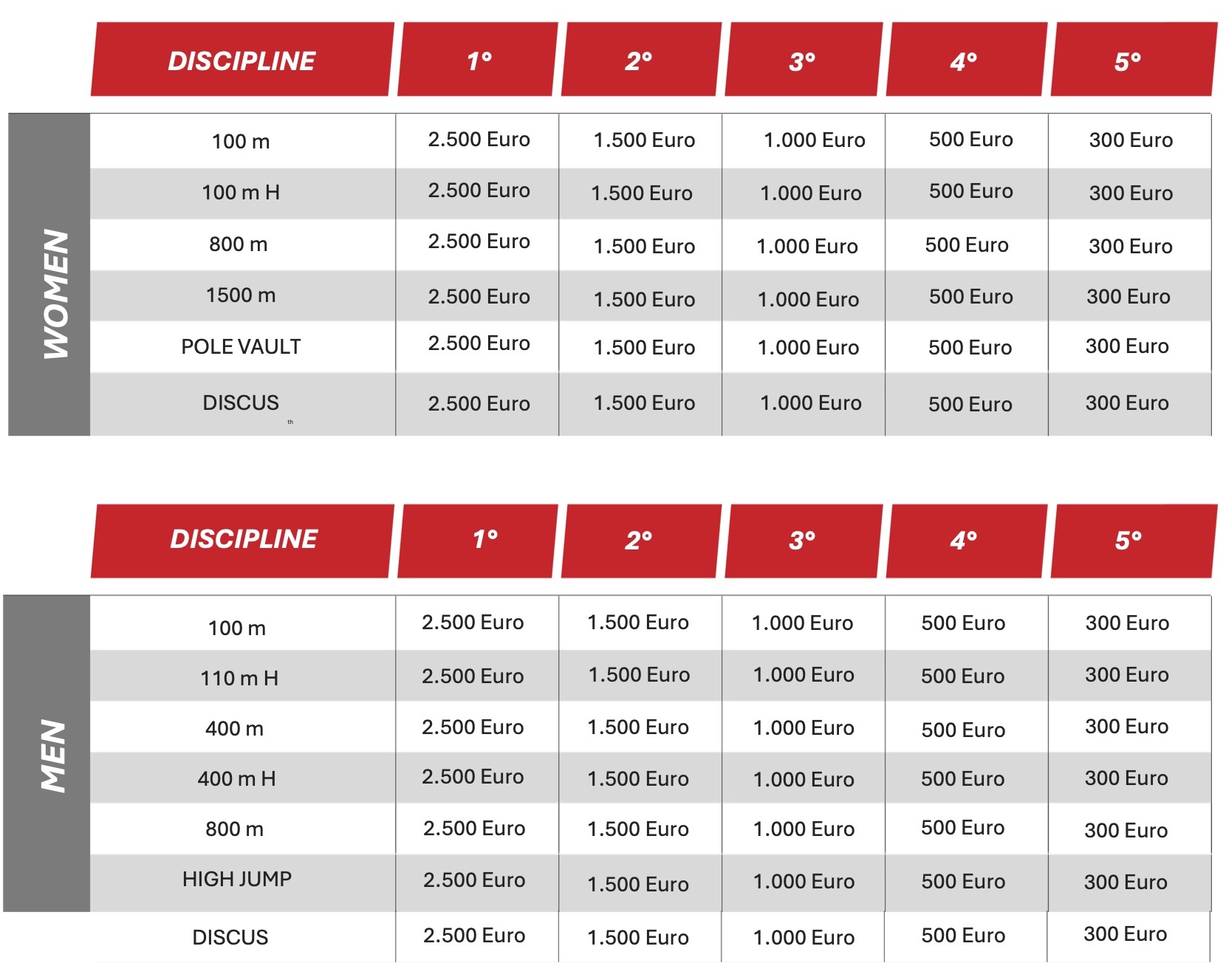 Discover the full competition schedule and the official prize money of GalAthletics Bellinzona.
